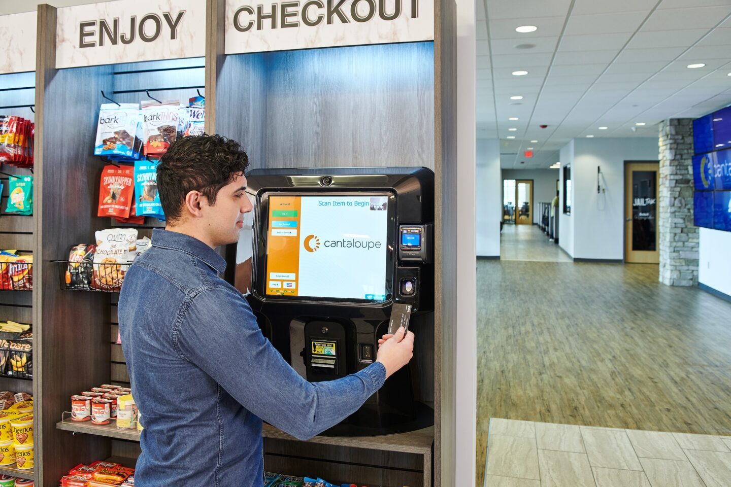 AI-powered refrigerated units with touchscreen interface and contactless payment